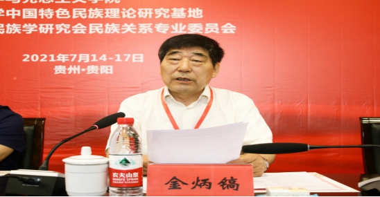 中央民族大学资深教授金炳镐作主旨发言。他就习近平总书记在建党100周年庆祝大会上的讲话中总结的“中国共产党为什么能?中国特色社会主义为什么好?最根本的原因是马克思主义行”以及中华人民从站起来、富起来到强起来的伟大飞跃,突出了“铸牢中华民族共同体意识”的研讨会主题,强调应进一步进行马克思主义民族理论研究。他表示,中国共产党在这100年不断探索马克思主义民族理论中国化,实现了民族解放与团结,建立了中华人民共和国,并创立了中国特色社会主义理论体系,实现全面小康,根据这100年的经验,我们要继续认真的研究民族理论与政策。他指出,要实现新时代中华民族伟大复兴就必须铸牢中华民族共同体意识,要清晰认识到“铸牢中华民族共同体意识”是历史发展的必然。希望围绕“铸牢中华民族共同体意识”这一主题开展充分研讨,并预祝研讨会取得圆满成功。