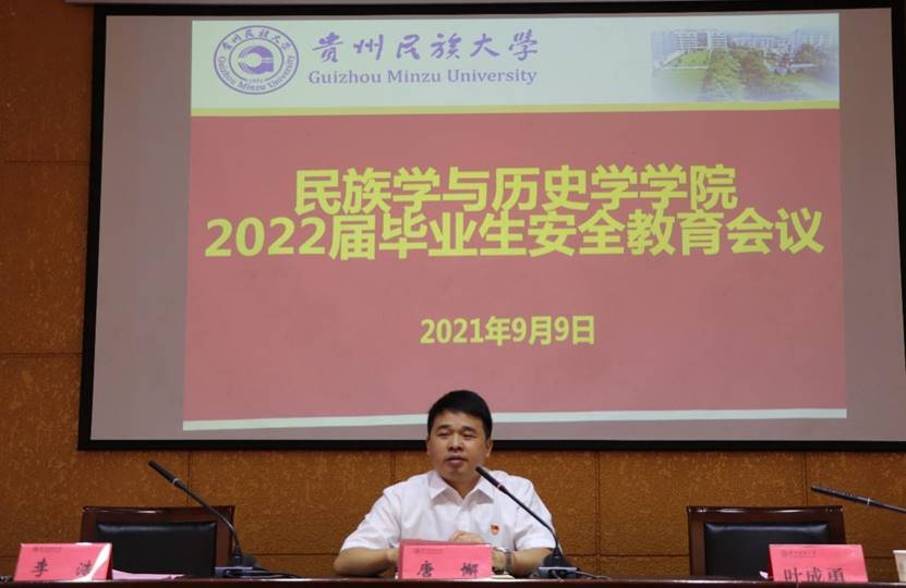 花溪校区行政楼第五会议室为2022届毕业生进行安全教育宣讲活动,出席本次活动的领导有院党委书记唐懈,院党委副书记李浩,2022届毕业班班主任张文艳、何慧琳,以及2022届本科毕业班全体学生。本次活动旨在切实提高学生的安全意识,增强学生的安全防范意识和避险能力,创建平安校园。
