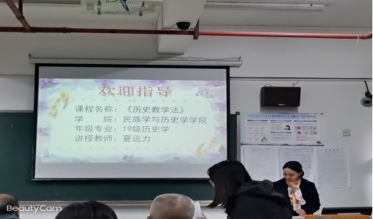 此次参赛教师及授课内容主要有:杨春艳《乡土历史文化调查》、胡文兰《田野调查基本概念》、夏远力《历史教学法》、崔璨《HIP-HOP文化的演变》、王朝阳《苗族文化介绍》、赵宁芳《认识马克思主义》、何慧琳《历史文化名城》、申雯清《民族学人类学经典导读》、高照晶《“赫尔之家”美国女性进步主义改革的缩影》、陈文元《中国民族史-土司制度》、史达宁《中国历史文选三》、贺源《人类学概论》、张岳嵩《中华民族共同体意识教育》。各位授课老师准备十分充分,课程内容丰富,通过PPT展示、板书搭配口头及肢体语言向台下师生生动地展示了授课内容承上启下、授课方式简单有效、授课节奏快慢有序、课堂互动生动有趣、课堂气氛积极活跃,使此次参与活动的师生受益良多。
