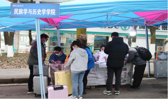 2022年2月26日—27日,民族学与历史学学院迎来分批错峰返校学生,立足学校防疫返校具体工作安排,为切实保障返校学生的个人安全、顺利返校。学院团委从26号正常返校,经核酸检测报告查验、两码查验、体温检测均正常且无其他异常情况的学生中公开招募志愿者,协助值班老师做好学生返校防疫工作,经各班自主报名和推荐,本次参与志愿服务达十余人。他们坚守在学院返校报到接待点,助力漫画工口