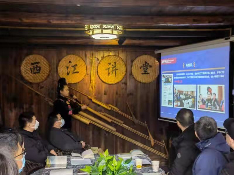 民族学与历史学学院教授、教育部新农科民族高校服务乡村振兴扎个平台建设项目负责人、西江苗寨景区文化顾问李天翼向与会人员简要地介绍了西江苗寨乡村旅游的发展情况。“文化是西江苗寨发展的灵魂和命脉,正是有了苗寨鲜活的文化和珍贵的非物质文化遗产,西江苗寨的文化旅游得以蓬勃发展,才破解了富饶的贫困。在这其中,乡村人力资源的开发起到了至关重要的作用,以西江旅游公司为例,短短十余年,公司就汇聚了几百名涉旅人才。”