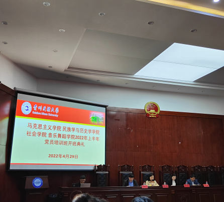 为深入学习贯彻党的十九届六中全会精神,省委十二届十次全会精神和省第十三次党代会精神,认真学习国务院《关于支持贵州在新时代西部大开发上闯新路的意见》,落实党中央《关于推动党史学习教育常态化长效化的意见》和省委、校党委有关要求,走好新时代长征路。民族学与历史学学院、马克思主义学院、社会学院、音乐舞蹈学院各支部党员于2022年4月29日下午13:30在法学院模拟法庭进行了2022年上半年党员培训班开班典礼暨第一次授课学习活动。本次活动由马克思主义学院党委副书记徐勤山同志主持,内容分为两个部分:第一部分由各学院党委书记在开班典礼中作相关学习要求,第二部分由马克思主义学院付江红同志进行第一次授课。