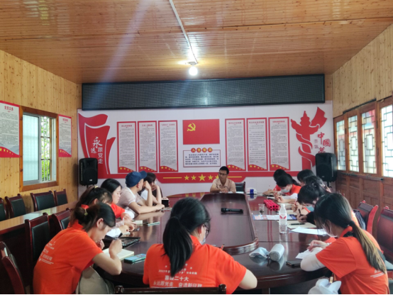 图为实践队员向濛江街道司蒙村村支书进行座谈会,了解到司蒙村不仅重视经济、文化的发展,还高度重视禁毒防艾领域 。