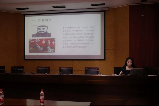 第四组是由22级文物与博物馆学的同学罗华艳带来的《史学要论》读书报告,她重点介绍了“什么是历史学”和“现实的观念”,充分引用李大钊在《史学要论》中的观点来讲解。