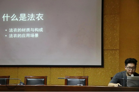 第二组是由22级文物学与博物馆学的同学赵国佑带来的《藏传佛教法衣起源初探》调查报告,报告紧紧围绕着法衣的结构、应用场景,其中赵国佑同学重点介绍了法衣的饰品骨头璎珞,他除了引用文献典籍,还做出了自己的见解。