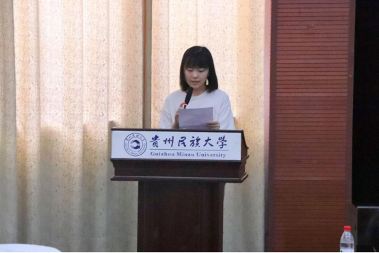 之后,由本科新生代表陈星谕发言,她分享了进入大学的喜悦的同时也表示已经踏入了新的人生篇章。她将和同学们一起秉持民大“奋发蹈厉,庄敬自强”的精神,自主学习、涵养德行、坚守本心,不可辜负大好青春年华,当用努力的汗水书写人生华章。
