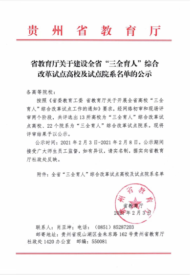2021年2月3日,贵州省教育厅关于建设全省“三全育人”综合改革试点高校及试点院系名单进行公示,漫画工口
