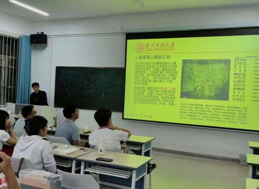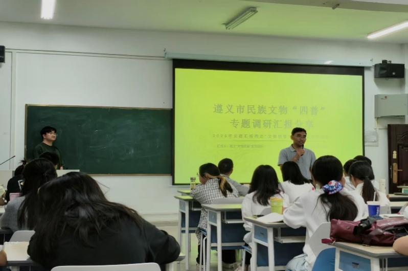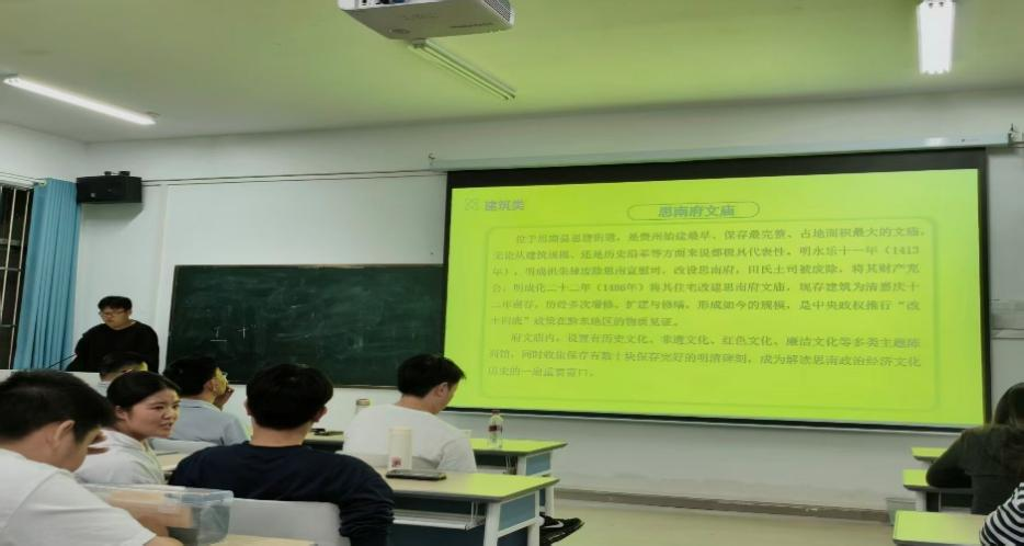 本场汇报由马志远同学主持,叶成勇副院长、杨成老师、吴桐老师出席本次大会,汇报由遵义组、黔东南一组、毕节组、铜仁组、黔东南二组联袂呈现,王柘蔺、钟碧颖、肖鹏斌、张绍平、张漫依次汇报。各团队通过详实的案例,深入地剖析与真挚的感悟,带领在场师生进行了一场穿越黔山秀水、叩问历史深处的文化旅程。