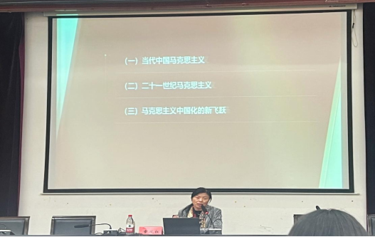 宣讲会上,章凤红教授结合具体实例阐述了习近平新时代中国特色社会主义思想的历史地位。最后,她建议从坚持读原著学原文悟原理、理论联系实际学,带着问题学、把握其蕴含的马克思主义思想方法和工作方法等几方面入手切实做到学、思、用贯通,知、信、行统一。