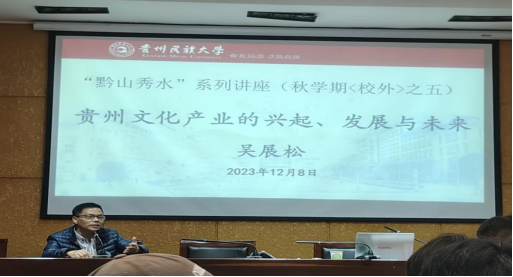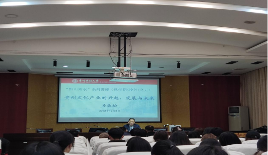为拓展学生专业视野,提高学生知识素养,增加学生的社会实践经验,民族学与历史学学院文化产业管理系“贵州文化产业的兴起、发展与未来”讲座于2023128日晚1900——2100在行政楼第五会议室顺利举行。贵州爽爽漂流旅游服务有限公司党支部书记、董事长、总经理吴展松老师,民历学院杨成教授、文化产业管理系系主任孔维增副教授,民历学院2021级、2022级、2023级研究生及文化产业管理专业130余人参加了本次讲座。本次讲座由杨成老师主持,吴展松老师主讲。